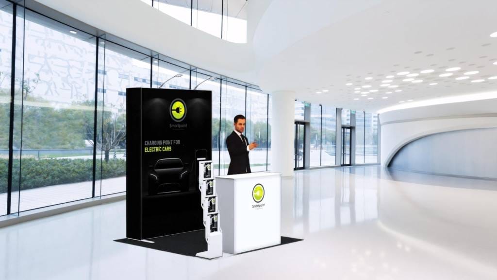 The presentation kits are portable solutions in a compact suitcase that can be transformed into a reception desk.