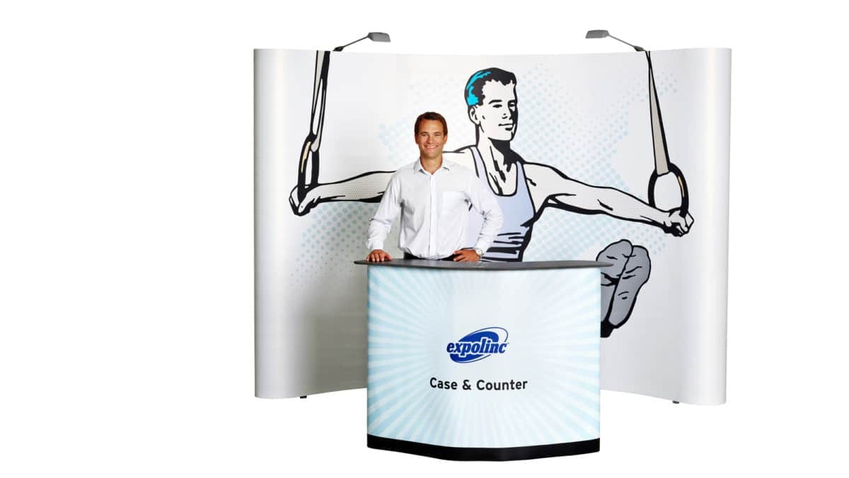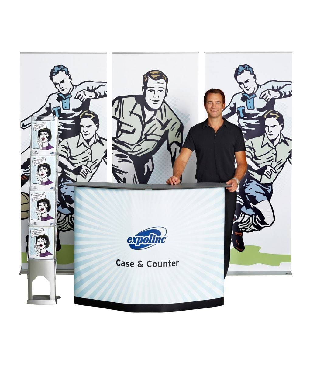 Combine Roll up Classic banner displays, Pop up Magnetic trade show walls with a convertible case as a counter, brochure holder …